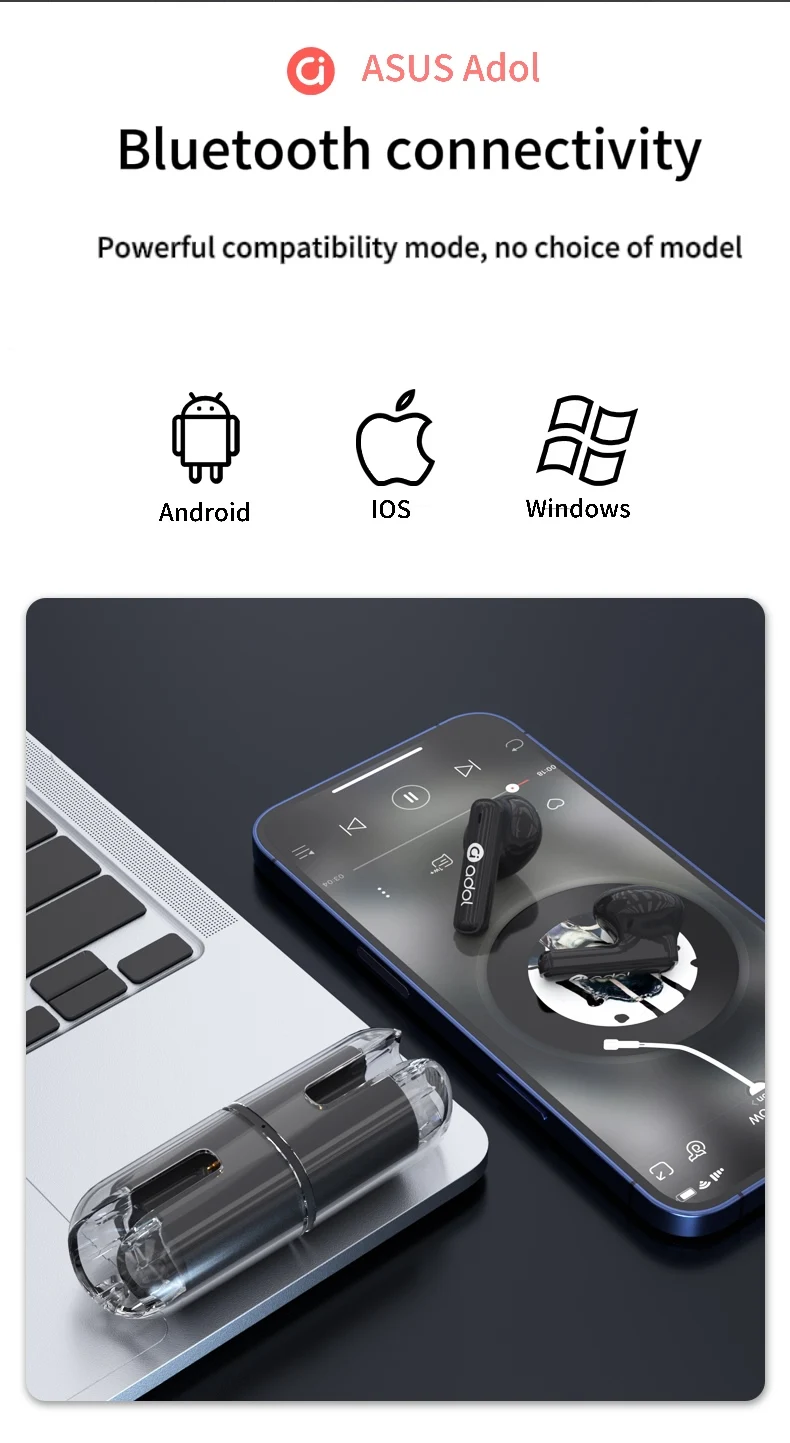 Experience ultimate audio quality with the Asus Adol Wireless Earphones! Featuring Enc Noise Cancellation technology, these earphones provide superior sound while blocking out unwanted noise. With their wireless design, you can enjoy your music on-the-go without any tangled cords. Upgrade your listening experience with the Asus Adol Wireless Earphones.